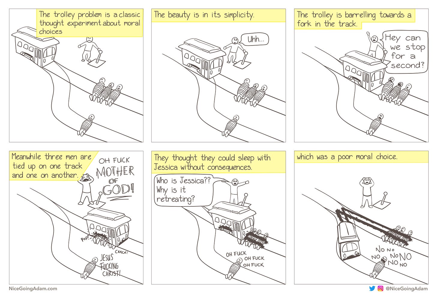 Trolley ProblemsAdamSep 01, 2022ShareThanks for reading Nice Going, Adam!! Subscribe for free to receive new posts and support my work.Subscribe
